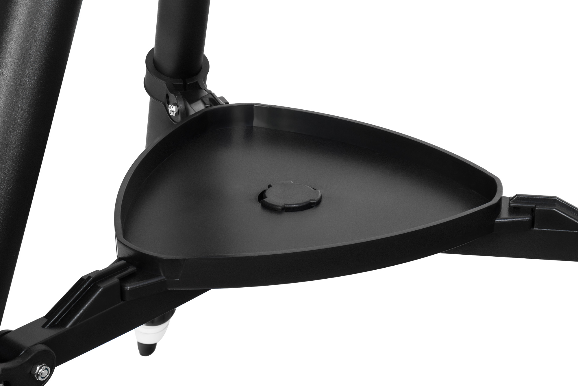Монтировка снабжена энкодерами. Технология Freedom-Find сохраняет информацию о первичном позиционировании, поэтому монтировку в любой момент можно переключать в ручной режим без проведения повторной настройки. Монтировка устанавливается на алюминиевую треногу, которая стоит устойчиво на любой поверхности, так как высота для каждой ножки регулируется отдельно. В центр треноги устанавливается лоток для аксессуаров: на нем можно разместить дополнительные принадлежности, чтобы они всегда были под рукой.