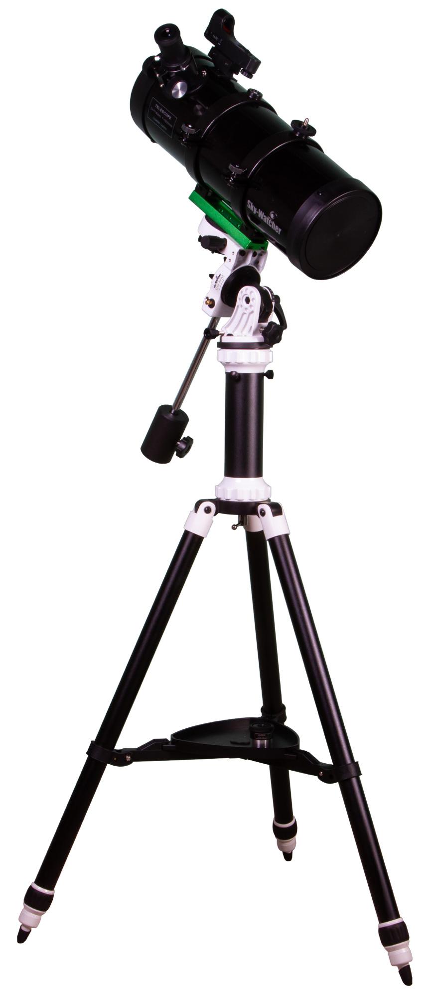 Монтировка AZ-EQ Avant интересна тем, что она может работать и в экваториальном, и в азимутальном режиме. Управление ручное, для ведения используются ручки тонкой настройки. Ход монтировки плавный, уверенный, без рывков. Тренога сделана из алюминия и может регулироваться по высоте. Есть удлинительная трубка для установки длиннофокусных оптических труб и лоток для аксессуаров.