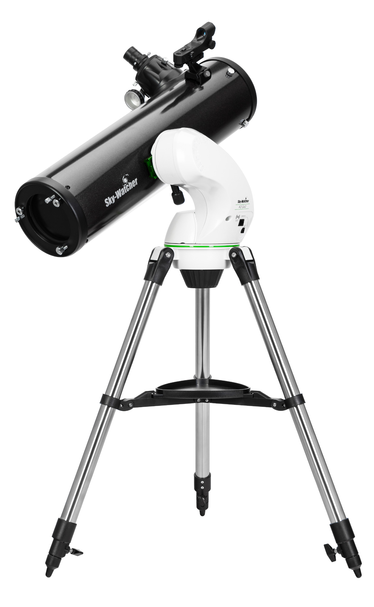 Sky-Watcher P130650AZ-GO2 SynScan GOTO – рефлектор Ньютона на азимутальной монтировке, управлять которым можно прямо со смартфона или планшета. Монтировка оснащена системой автоматического наведения SynScan GOTO, а мобильное приложение, используемое для управления, содержит координаты свыше 10 000 астрономических объектов. Одним нажатием на экран мобильного устройства можно запустить поиск интересующего вас объекта на ночном небе, и монтировка сама наведет на него оптическую трубу.
