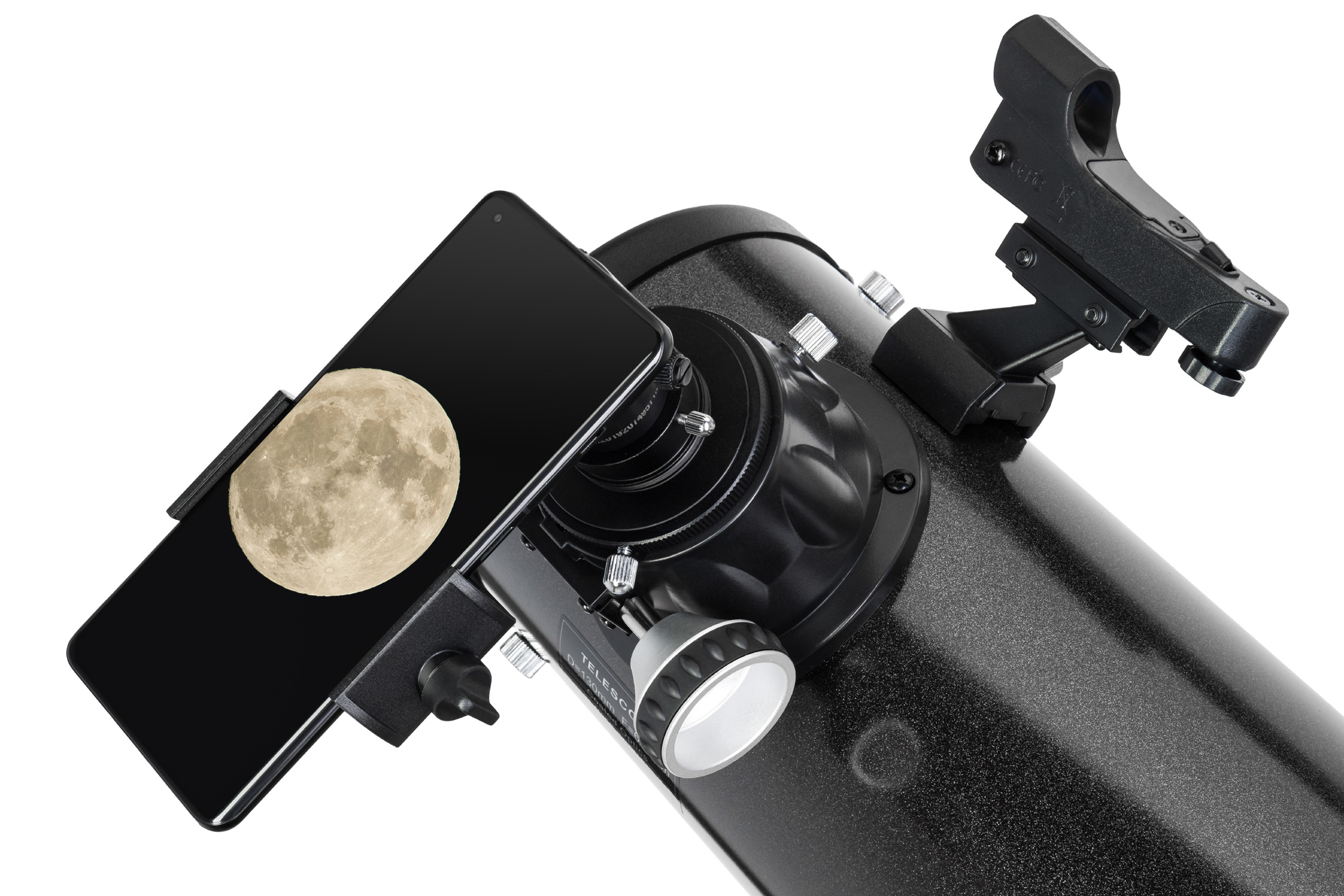 Оптическая схема построена вокруг 130-миллиметрового главного зеркала. Его форма – парабола, поэтому на всем диапазоне кратности изображение четкое и хорошо читаемое. К тому же зеркала – главное и вторичное – защищены покрытием из алюминия и кварца, которое усиливает их светоотражательную способность до 94%. Оптика телескопа отлично показывает далекие туманности, галактики и звездные скопления, также хорошо работает по ближнему космосу. В комплекте есть необходимый набор аксессуаров для старта: пара окуляров и искатель с красной точкой.