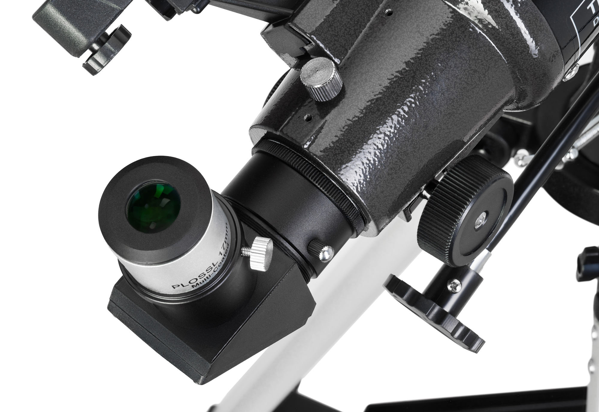 Оптика просветлена и эффективно убирает цветовые искажения из изображения. В базовой комплектации доступны два увеличения – 52х и 90х. Оба достигаются при помощи двух комплектных окуляров. При необходимости на телескоп можно установить дополнительные окуляры или линзу Барлоу для расширения его оптических возможностей. Посадочный диаметр – 1,25 дюйма. Для наземных наблюдений в комплекте есть диагональное зеркало.