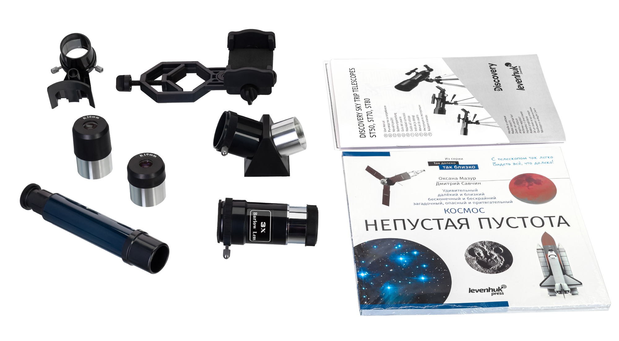 • Окулярный адаптер для телефона и большой набор аксессуаров
