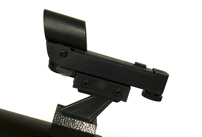 Данная модель комплектуется двумя окулярами: 10 мм (125x) и 25 мм (62x). Для поиска астрономических объектов используется искатель с красной точкой. Труба установлена на экваториальную монтировку. Высота треноги регулируется. -
