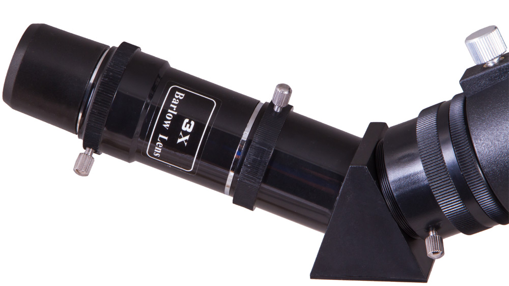 Апертура телескопа – 50 мм, на линзы нанесено полное многослойное просветляющее покрытие. Штатная диагональная призма строит прямое (неперевернутое) изображение, поэтому телескоп вполне может заменить зрительную трубу. Оптический прибор комплектуется всеми необходимыми аксессуарами: двумя окулярами 18x и 45x, линзой Барлоу 3x, диагональной призмой и безопасным солнечным фильтром. В комплекте также идет оптический искатель 2x. Максимальное полезное увеличение телескопа составляет 100x.