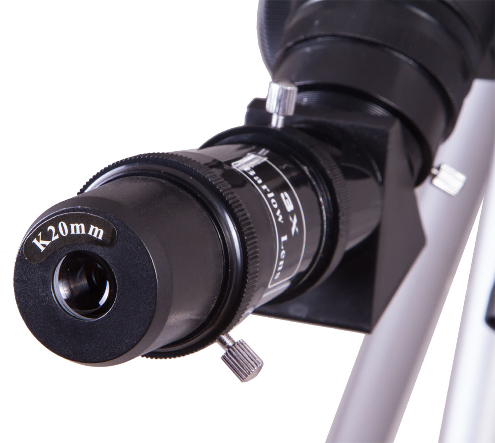 В комплект поставки входят все необходимые аксессуары – вы можете приступить к наблюдениям сразу после распаковки телескопа. В комплекте два окуляра 67x и 20x, линза Барлоу 3x, диагональная призма и солнечный фильтр. Максимальное полезное увеличение телескопа составляет 140x. Со штатными окулярами и линзой Барлоу можно получить увеличение 200x. Телескоп снабжен оптическим искателем 5x24.