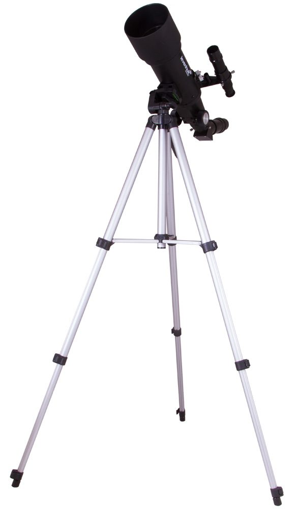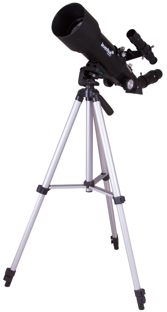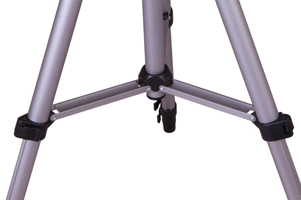 Рефрактор крепится на легкую и компактную азимутальную монтировку. Телескоп перемещается по вертикали и по азимуту с помощью специальной ручки. Монтировки такого типа не требуют от наблюдателя специальных навыков. И школьник, и взрослый любитель астрономии освоит управление телескопом за один вечер. Монтировка устанавливается на алюминиевую треногу с регулировкой высоты от 40 до 125 см.