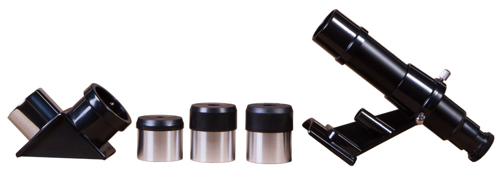 • В комплект поставки включено все необходимое: три разнофокусных окуляра и диагональное зеркало