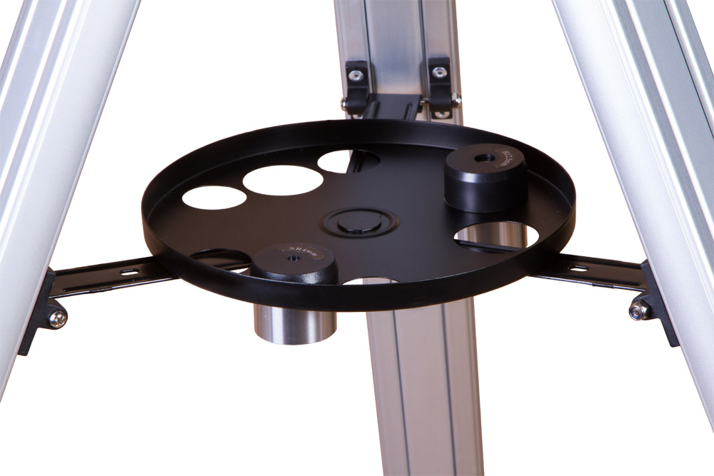 Телескоп комплектуется алюминиевой треногой, высоту ножек которой можно регулировать. Есть лоток для аксессуаров. В комплект поставки также включен оптический искатель с 5-кратным увеличением.
