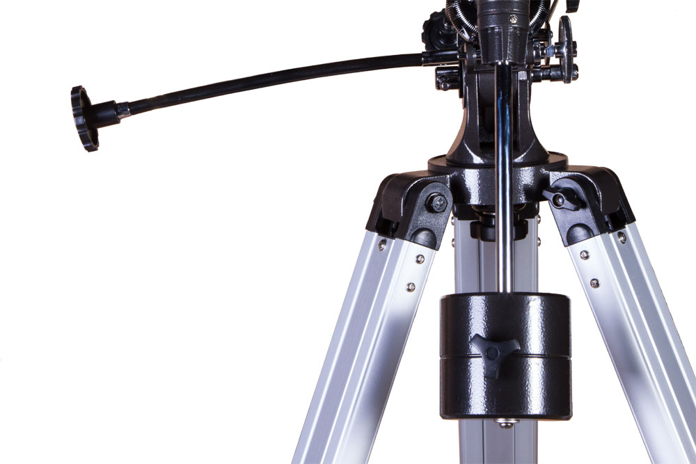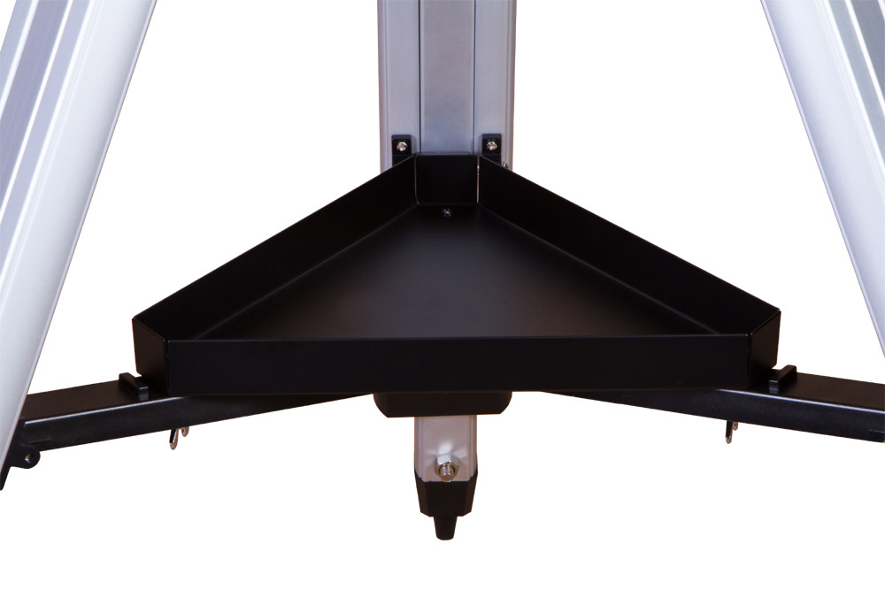 Для поиска астрономических объектов и их ведения по небосклону используются 6-кратный оптический искатель и экваториальная монтировка. Ход монтировки плавный, без рывков и колебаний. Монтировка устанавливается на алюминиевую треногу, высоту которой можно регулировать. Каждая ножка треноги настраивается индивидуально, что позволяет размещать телескоп даже на неровных поверхностях. Есть лоток для аксессуаров.