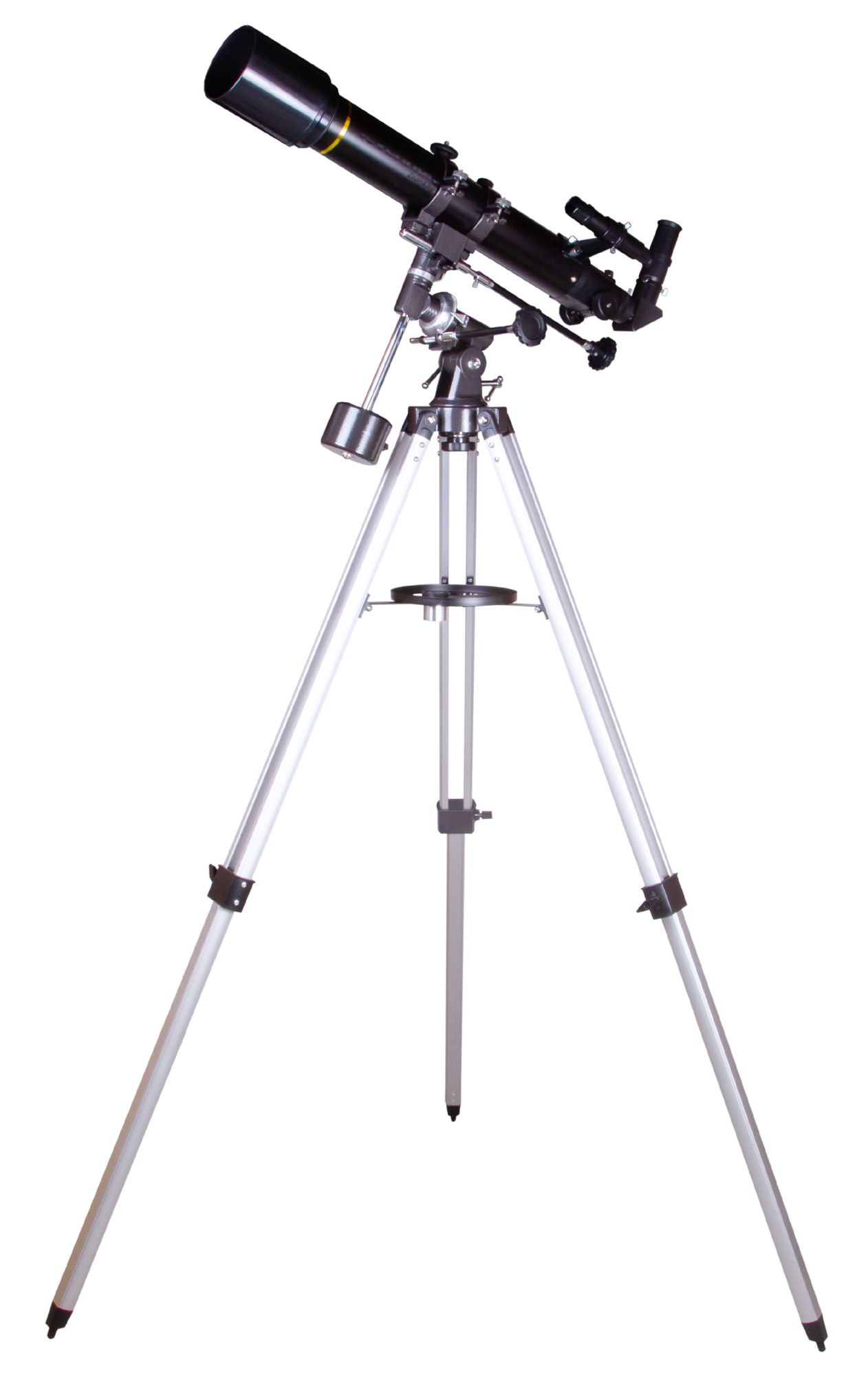 Оптическая труба установлена на экваториальную монтировку, которая позволяет точно и легко управлять телескопом. Она требует времени на освоение, но дает лучшие результаты при изучении космоса, чем более простая азимутальная монтировка. Тренога сделана из алюминия, она устойчивая и надежная. Высоту ножек треноги можно регулировать, есть лоток для аксессуаров.
