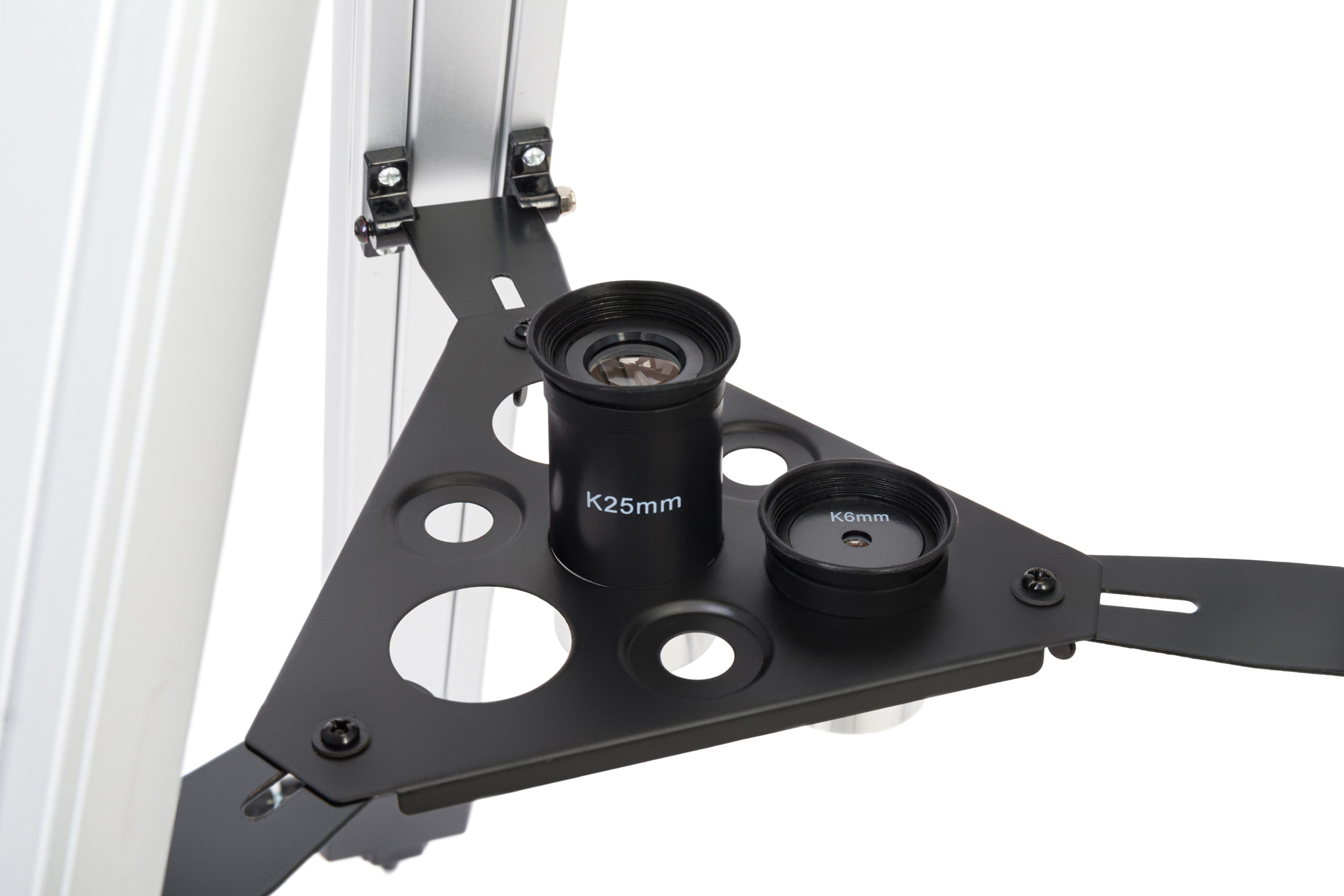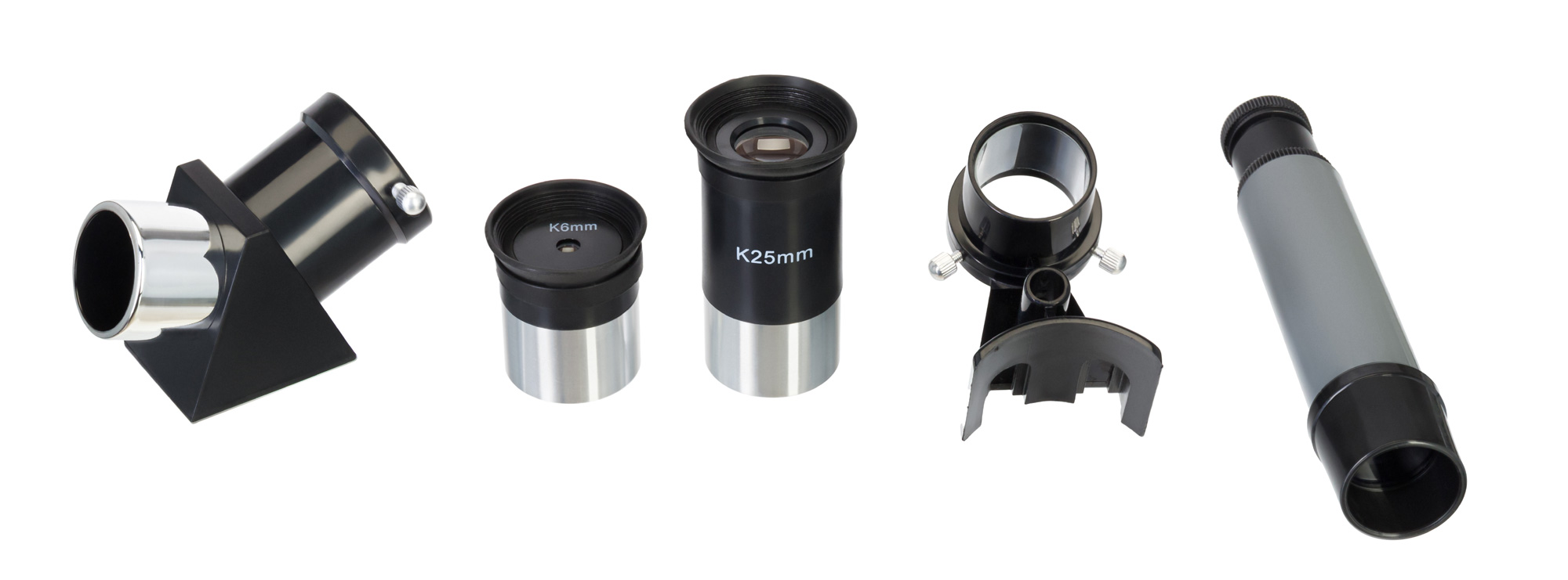 Оптическая труба установлена на экваториальную монтировку. Она надежна, имеет плавный ход, управляется вручную. Тренога сделана из алюминия и отличается высокой устойчивостью. Высоту каждой ножки треноги можно регулировать. Есть полочка для аксессуаров. Стандартный фокусер позволяет устанавливать на телескоп любые оптические аксессуары с посадочным диаметром 1,25 дюйма.