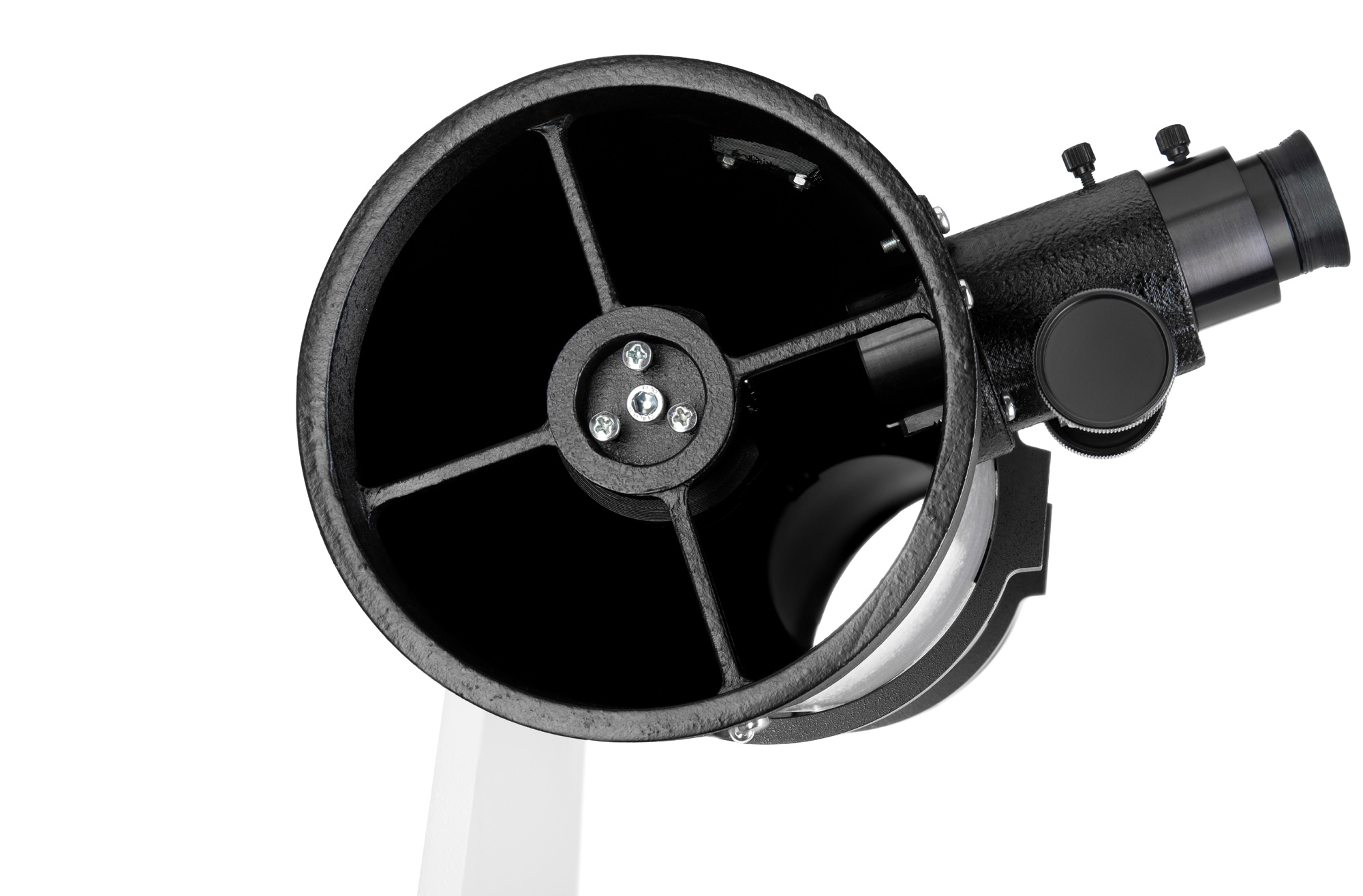 Телескоп управляется вручную при помощи монтировки Добсона. Оптическая труба на нее крепится при помощи колец и пластины «ласточкин хвост». Сборка осуществляется быстро, без сложных операций. Монтировка обладает плавным и надежным ходом – «прицеливаться» в объекты довольно легко. Телескоп можно поворачивать классическим образом: влево, вправо, вниз и вверх.