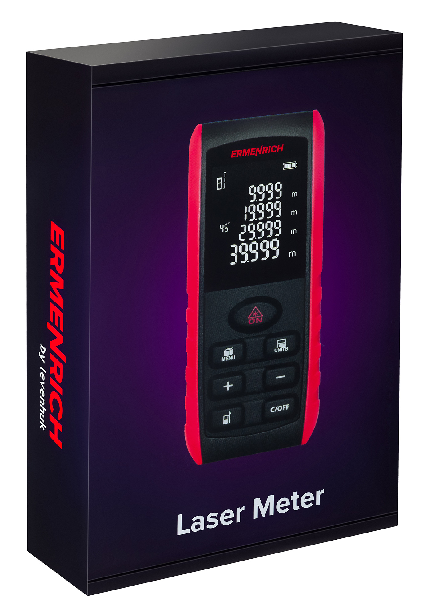Лазерная рулетка Ermenrich Reel PRO GE60 – многофункциональное устройство для измерения расстояний, объема, площади и углов. Прибор позволяет делать точные замеры даже в сложных условиях, где нет возможности попасть лазером в нужную точку – функция «Пифагор» рассчитывает расстояние на основании промежуточных измерений.