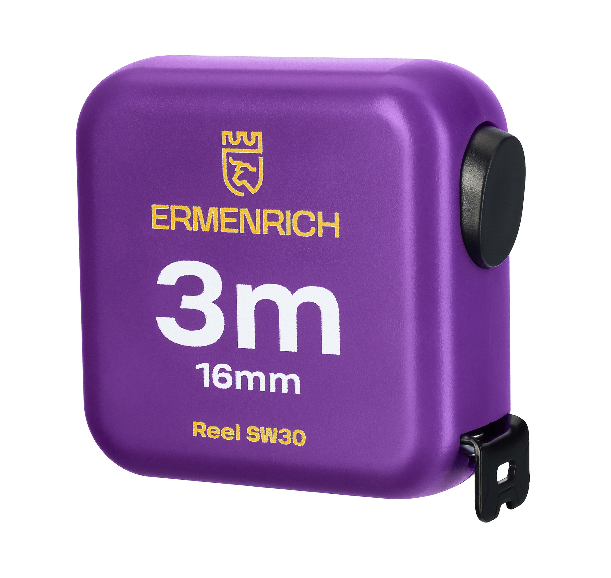 Матовое стальное полотно рулетки Ermenrich Reel SW30 защищено от всяческих повреждений. Крупная и четкая разметка контрастным образом размечена с одной стороны белого полотна. Корпус рулетки способен противостоять механическим воздействиям за счет материала, из которого он изготовлен, – высокопрочного пластика ABS. Кроме прочего, рулетка всегда будет у вас под рукой: вы не упустите ее ввиду яркого фиолетового цвета.