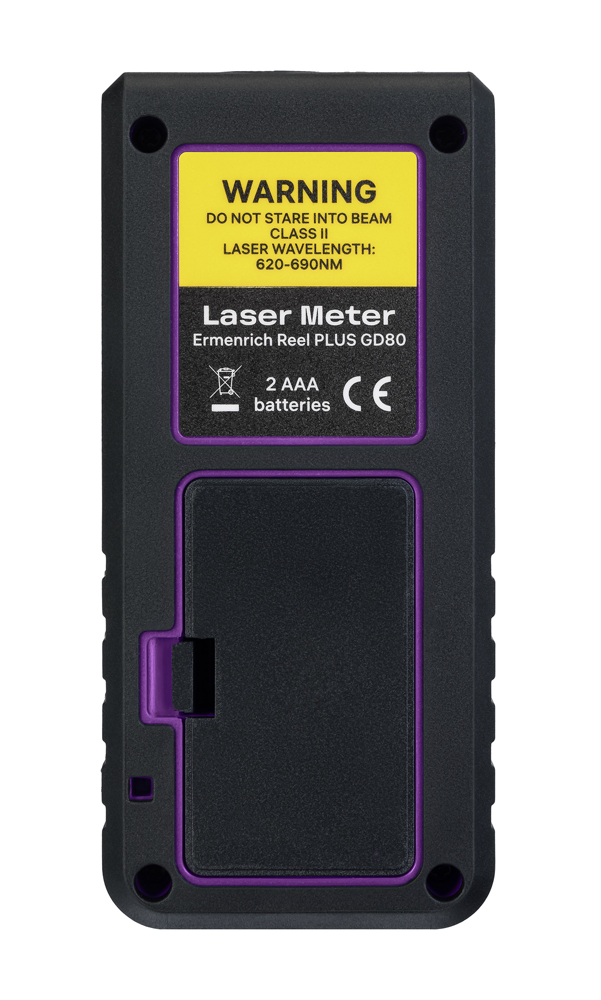 Лазерная рулетка Ermenrich Reel PLUS GD80 предназначена для применения в промышленности, строительстве и ремонте, но станет хорошим подспорьем и для домашнего мастера. С помощью этого удобного прибора можно измерять длины любых объектов, а также площади и объемы помещений. Расстояние между двумя точками, в одну из которых невозможно поместить устройство, также может быть автоматически определено путем промежуточных замеров (функция «Пифагор»). Присутствует возможность работы без звуковых оповещений.