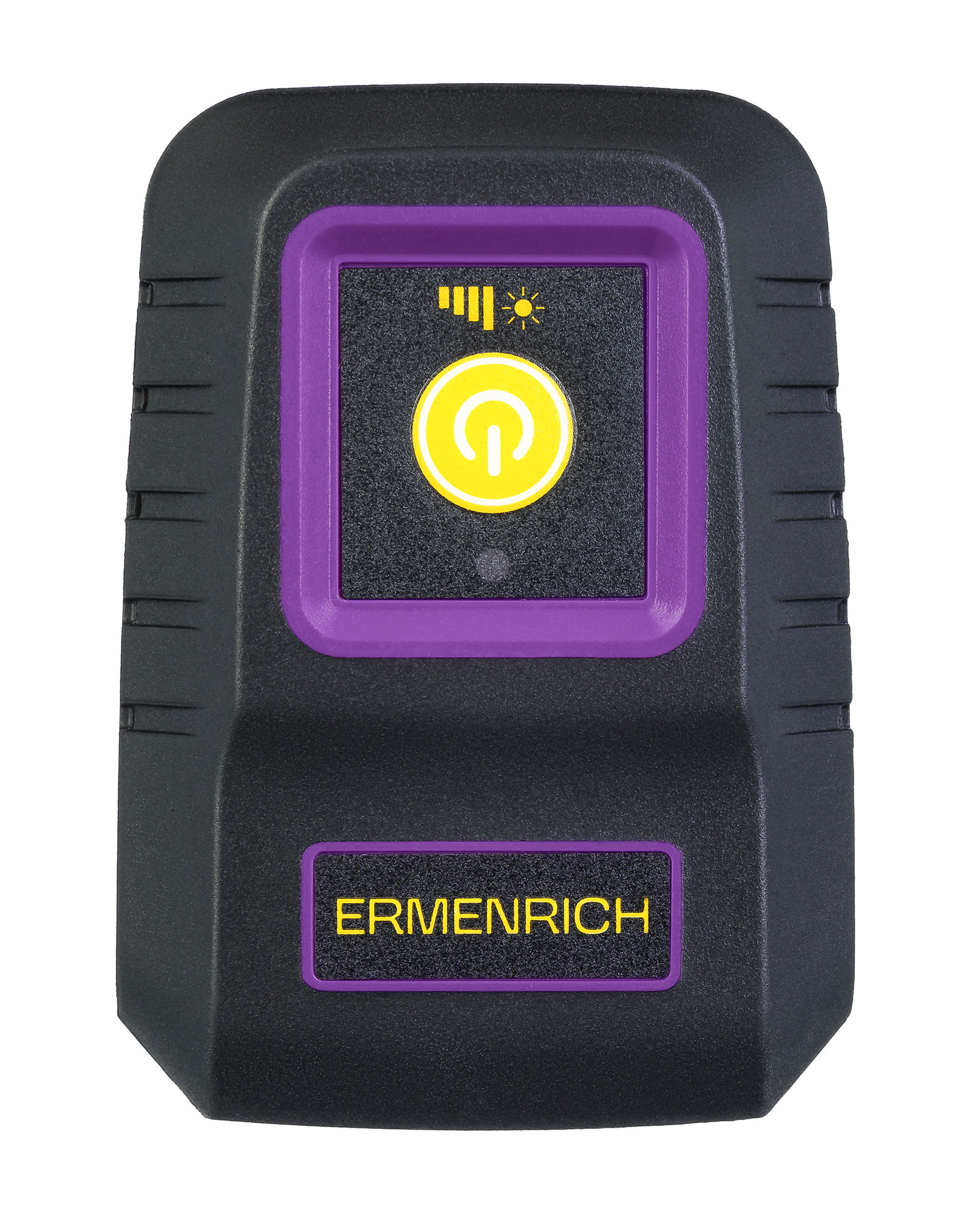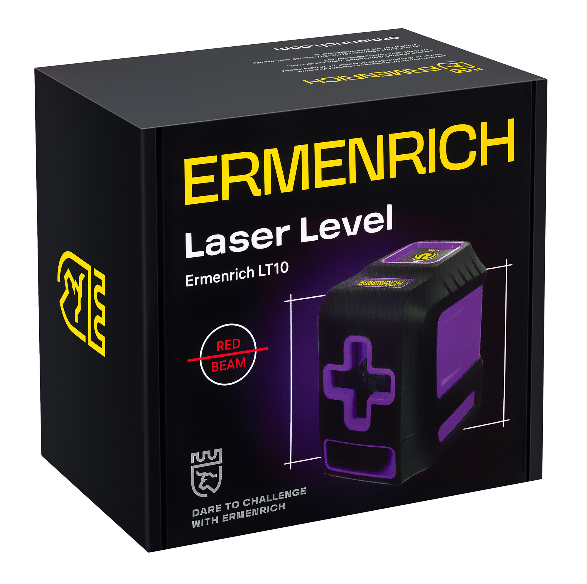 Модель Ermenrich BASE LT10 работает от пары батареек, срок автономной работы на одном заряде достигает 62 часов (при выборе низкой яркости лазерных светодиодов). Всего доступно 4 степени интенсивности лучей. Прочный корпус уровня защищен от пыли и брызг воды. Есть здесь и защита от падений, благодаря чему прибор устойчиво располагается на любой поверхности. При необходимости его можно также установить на штатив со стандартным диаметром 1/4 дюйма. Используя штатив с поворотной головкой, можно перемещать уровень, получая необходимую конфигурацию плоскостей.