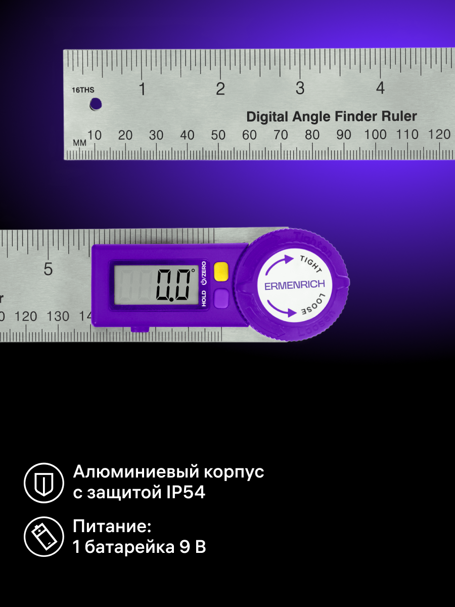 Цифровой угломер-линейка Ermenrich Verk DR30
