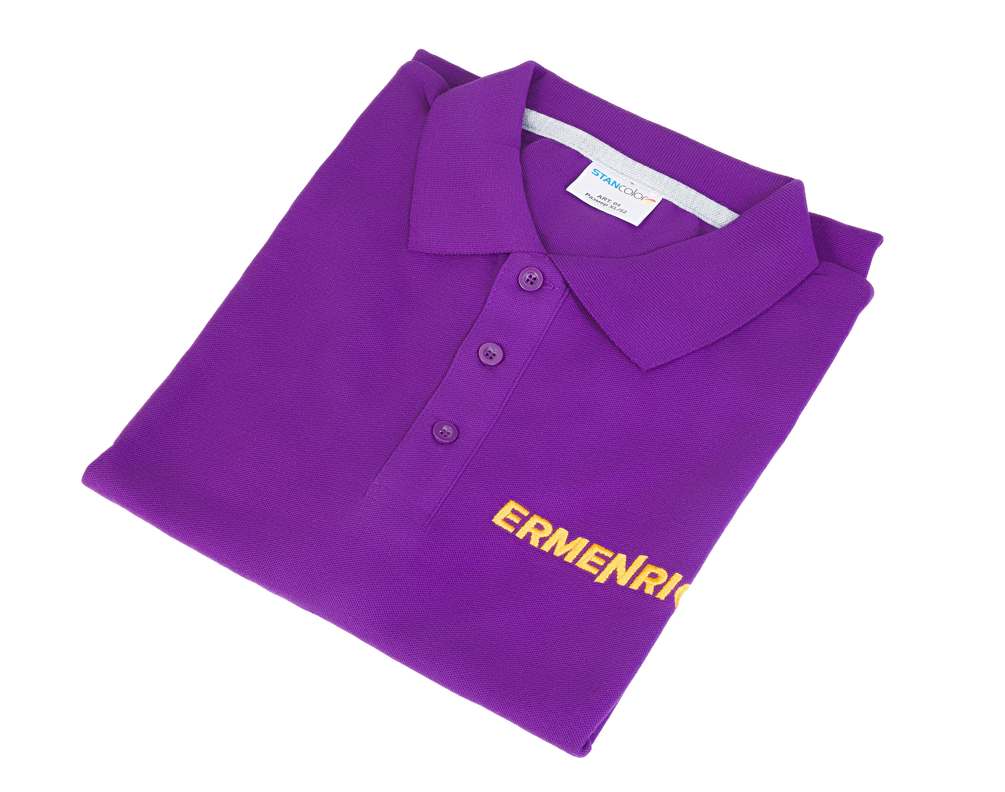 Фирменная футболка-поло Ermenrich с вышитым спереди и сзади логотипом бренда – это яркий, элегантный и стильный предмет гардероба, который можно использовать как повседневную, спортивную или рабочую одежду. Цвета футболки – фиолетовый и желтый – идеально сочетаются друг с другом, привлекают внимание прохожих своей оригинальностью. В состав ткани входят 65% хлопка и 35% полиэстера, за счет чего изделие приобретает самые лучшие физические свойства: мягкость, комфортность в носке, устойчивость к деформациям после стирки и образованию катышков.