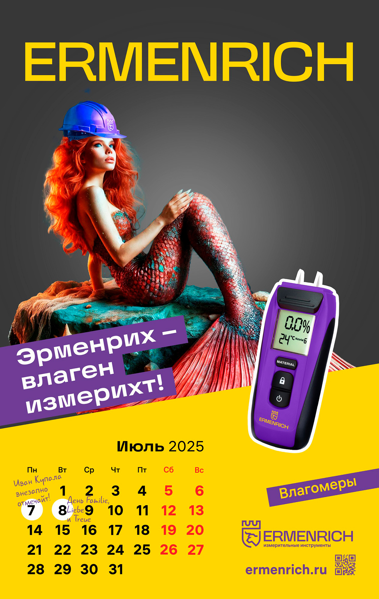 Бренд Ermenrich – надежный поставщик измерительных инструментов профессионального уровня, предназначенных для проведения любых работ по дому и строительству. Они пригодятся при проверке утечек газа, измерении длин и углов, поиске и тестировании проводки, ремонте и декорировании квартиры, в столярном и плотницком деле, а также многом другом. Календарь Ermenrich станет прекрасным подарком преданному любителю бренда!
