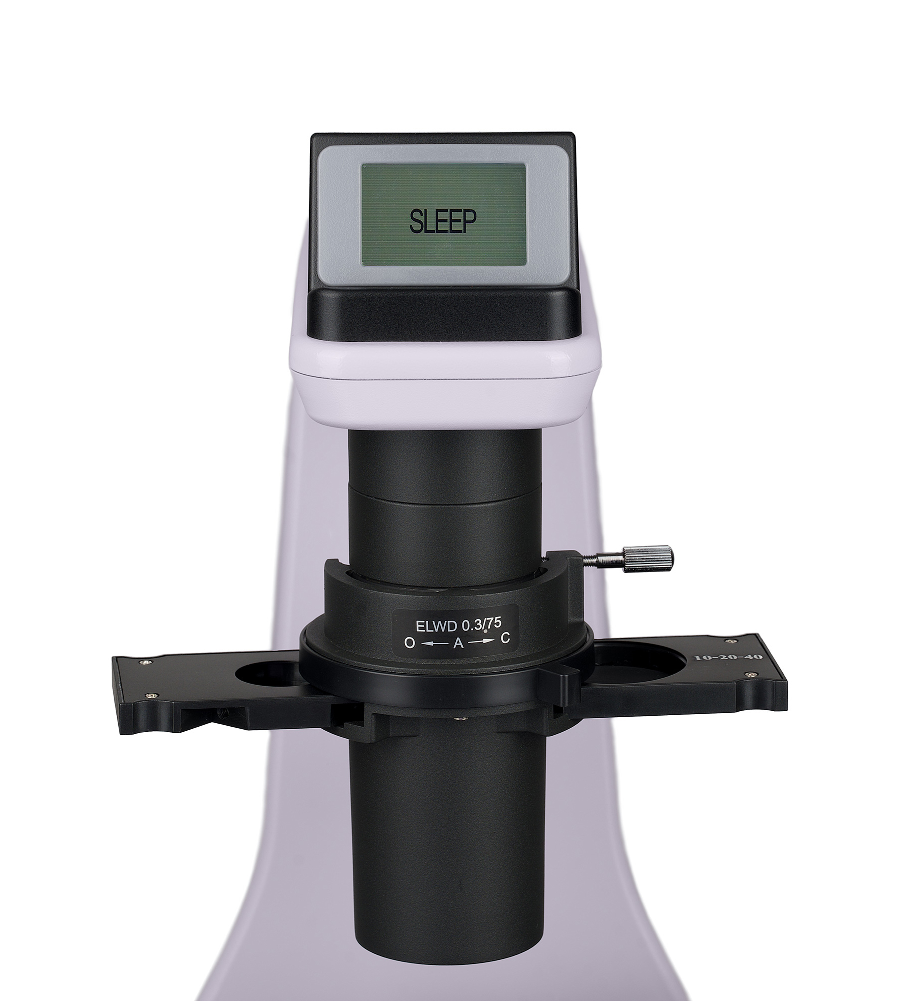 Пользователь микроскопа с помощью экрана и одной ручки настраивает яркость, блокирует регулировку яркости, выставляет режим сна и таймер автоотключения.Эргономичная конструкция
