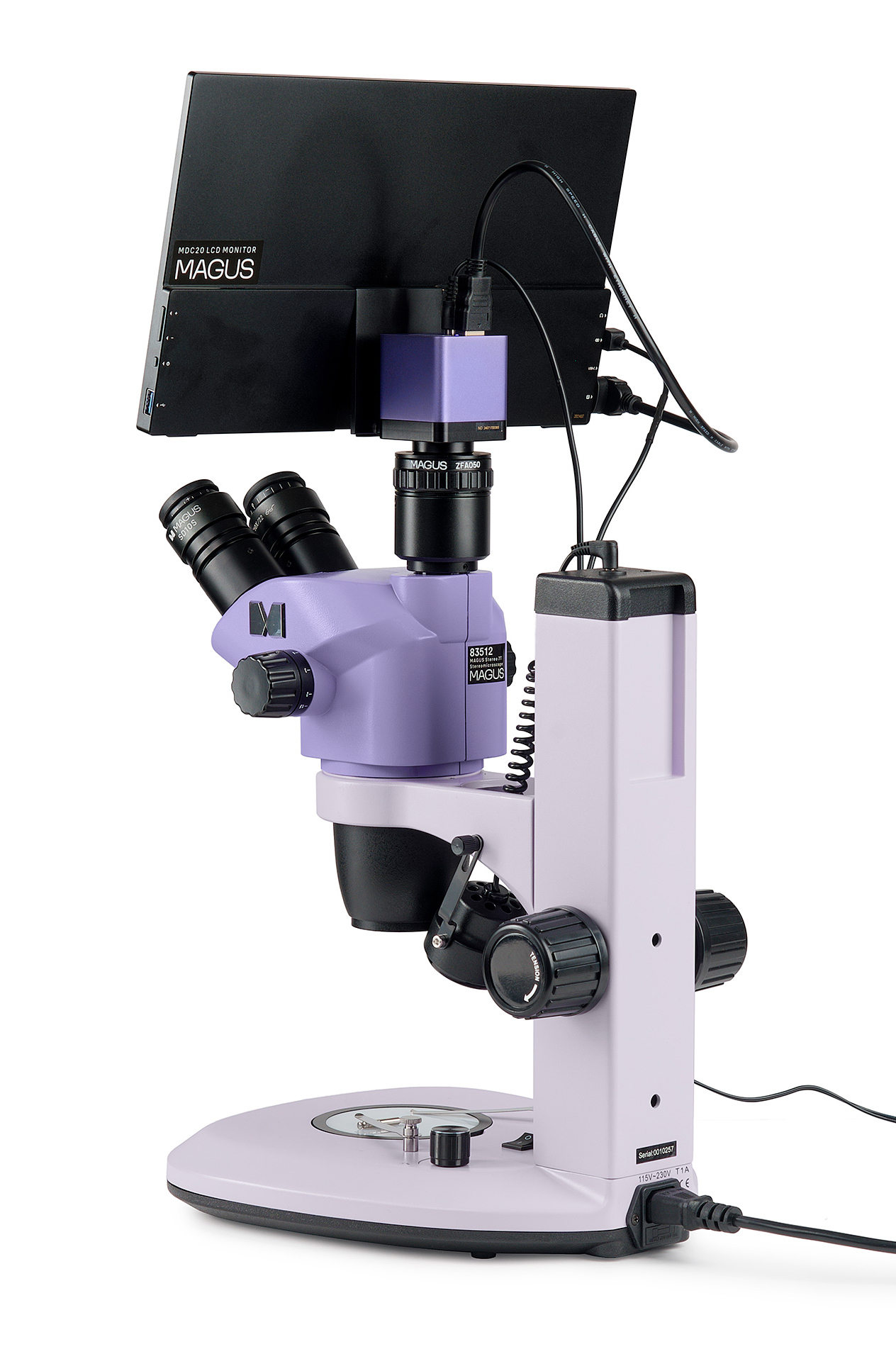 MAGUS Stereo D7T LCD BASE – цифровая модель, собранная на базе стереомикроскопа MAGUS Stereo 7T с использованием цветной камеры и монитора Full HD. Ключевое преимущество микроскопа с оптической схемой Грену – сохранение реалистичного рельефа поверхности без искажений пространственной ориентации за счет 15-градусного угла стереоскопичности. Диапазон увеличения 6,7–45 крат с плавной регулировкой позволяет детально изучать объекты самых разных размеров, начиная от мелких насекомых в энтомологии до сложных электронных компонентов в микроэлектронике. Постоянное рабочее расстояние в 105 мм обеспечивает удобство работы с крупными образцами и позволяет использовать различные инструменты для манипуляции с объектами под микроскопом без риска повреждения оптики или образца. Встроенные системы освещения – как проходящего, так и отраженного света – открывают возможности для исследования широкого спектра объектов: от прозрачных срезов биологических тканей до непрозрачных металлических деталей. При доукомплектовании модели появляется возможность работы в поляризованном свете и темном поле, что существенно расширит функциональность микроскопа, позволяя анализировать оптические свойства материалов, выявлять кристаллы, волокна и другие микроструктурные элементы.