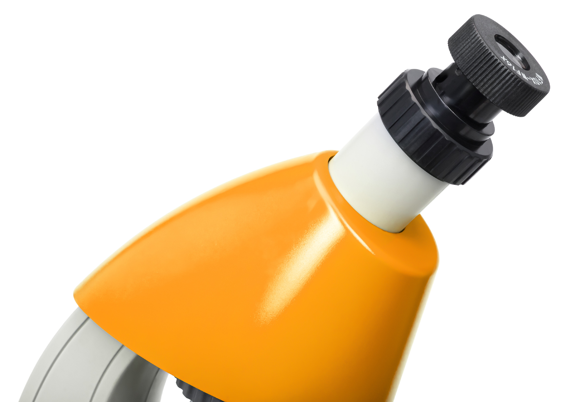 Увеличение микроскопа находится в диапазоне от 40 до 640 крат. Это не так много, как у лабораторных моделей, но увидеть клетки и рассмотреть крошечных обитателей микромира с его помощью вполне можно. Резкость настраивается грубо при помощи ручек фокусировки, расположенных на корпусе. Монокулярная насадка имеет небольшой наклон в 45°, поэтому использовать микроскоп для длительных наблюдений очень удобно. Объективы с увеличениями 4х, 10х и 40х уже установлены в револьверное устройство, как и двухпозиционный окуляр – в окулярную трубку. Окуляр обеспечивает два увеличения: 10х и 16х. Он несъемный, поэтому риск случайной потери исключен.