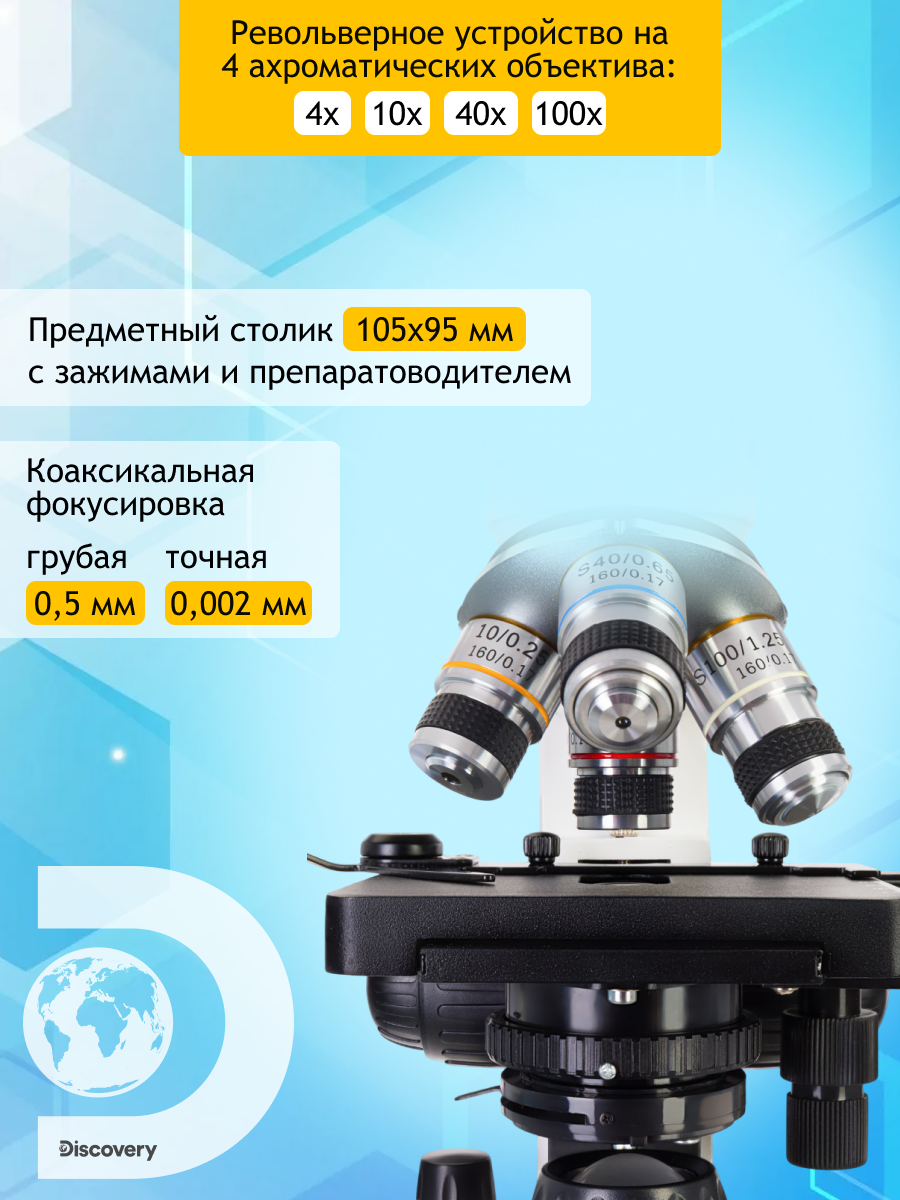 Ахроматическая оптика с увеличением от 40 до 1000 крат