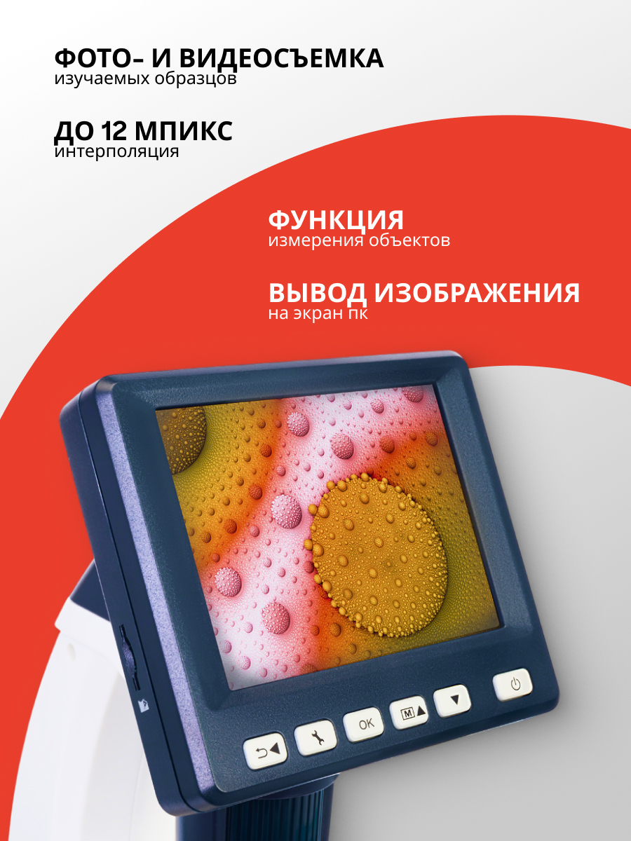 Бренд Levenhuk (Левенгук) при поддержке Discovery Гарантия, лет 10 лет EAN 5905555012032 Размер упаковки (ДxШxВ), см 33x19x14 см Вес в упаковке, кг 1.275 кг Тип цифровые Тип насадки цифровой дисплей/монитор ПК Материал оптики оптическое стекло Насадка цветной ЖК-экран 3,5", неповоротный Диапазон увеличения, крат 20 — 500 Диапазон увеличения от 200x до 800x Предметный столик, мм 95x98 Диапазон перемещения предметного столика, мм 0–40 по вертикали Характеристики предметного столика с измерительной шкалой, с препаратодержателями Фокусировка ручная, в пределах от 0 до 150 мм Корпус пластик Подсветка светодиодная Регулировка яркости Да Источник питания 100–240 В, 50/60 Гц, 5 В, 1 A на выходе, Li-ion аккумулятор 3,7 В/1050 мАч Питание от батареек есть Дополнительно время работы от аккумулятора Возможность подключения другого оборудования поддержка карт памяти microSD до 32 ГБ (в комплект не входит) Уровень пользователя для начинающих Уровень сложности сборки и настройки крайне просто Назначение для прикладных работ Расположение подсветки верхняя Метод исследования светлое поле Максимальное разрешение 12 Mпикс, 8 Mпикс, 5 Mпикс, 3 Mпикс, 1,3 Mпикс, VGA Число мегапикселей 5 (с интерполяцией до 12) Возможность записи видео есть Формат файлов фотосъемки *.jpg Формат файлов видеозаписи *.avi Кадровая частота 30 кадров в секунду ПО, драйверы ПО для захвата и редактирования фото и видео, с функцией измерения объектов Выход USB 2.0 Системные требования OS Windows 7/8/10, Mac 10.6~10.15; 1,8 ГГц Intel P4 и выше, ОЗУ от 512 МБ, видеокарта от 64 МБ, USB 2.0, CD-ROM ВидеоОтзывыЗадать вопросВы можете задать любой интересующий вас вопрос по товару или работе магазина.