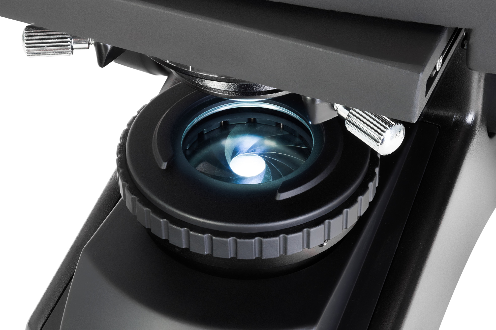 • Классический конденсор Аббе с апертурной диафрагмой, полевая диафрагма, настройка освещения по Кёлеру