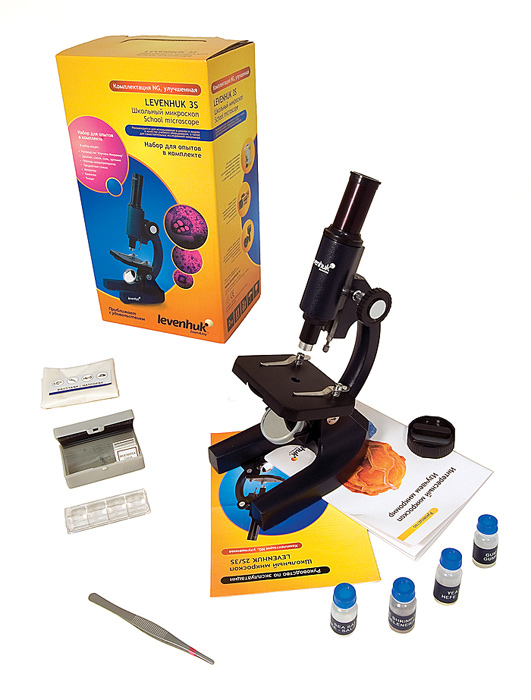 Микроскоп Levenhuk 3S NG оснащен ахроматическим объективом 16х и окуляром H12,5х. Увеличение прибора составляет 200 крат – этого вполне достаточно для первого знакомств с микромиром. Для освещения препаратов используется встроенное зеркало, так что для работы с микроскопом не требуются ни сеть, ни батарейки.