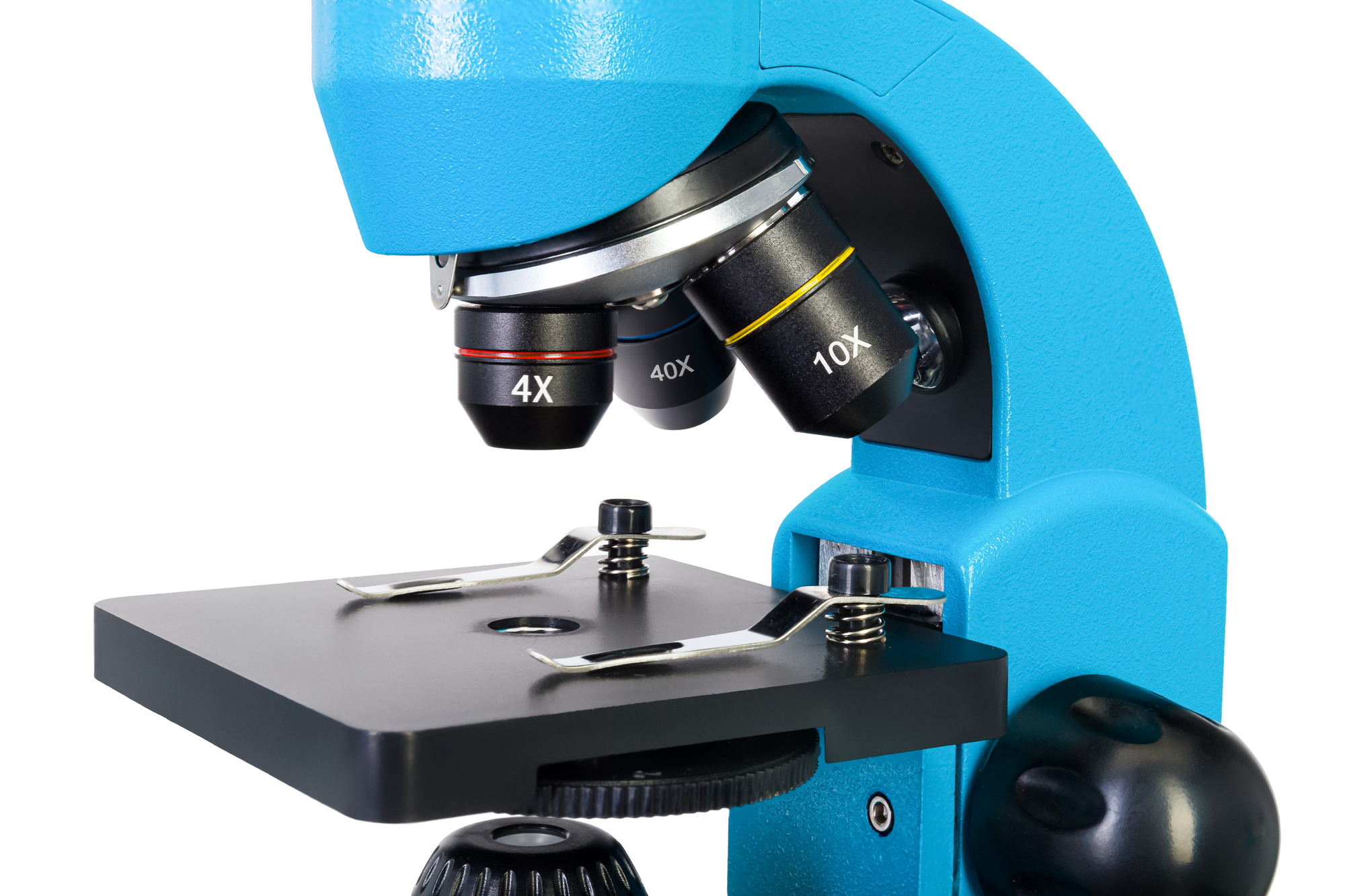 Микроскоп комплектуется тремя объективами, которые позволяют получить увеличения 40, 100 и 400 крат. Для смены кратности нужно просто повернуть револьверное устройство. Кроме того, в комплект входит линза Барлоу, удваивающая кратность микроскопа с каждым объективом. Максимальное увеличение прибора уже в базовой комплектации достигает 800 крат!