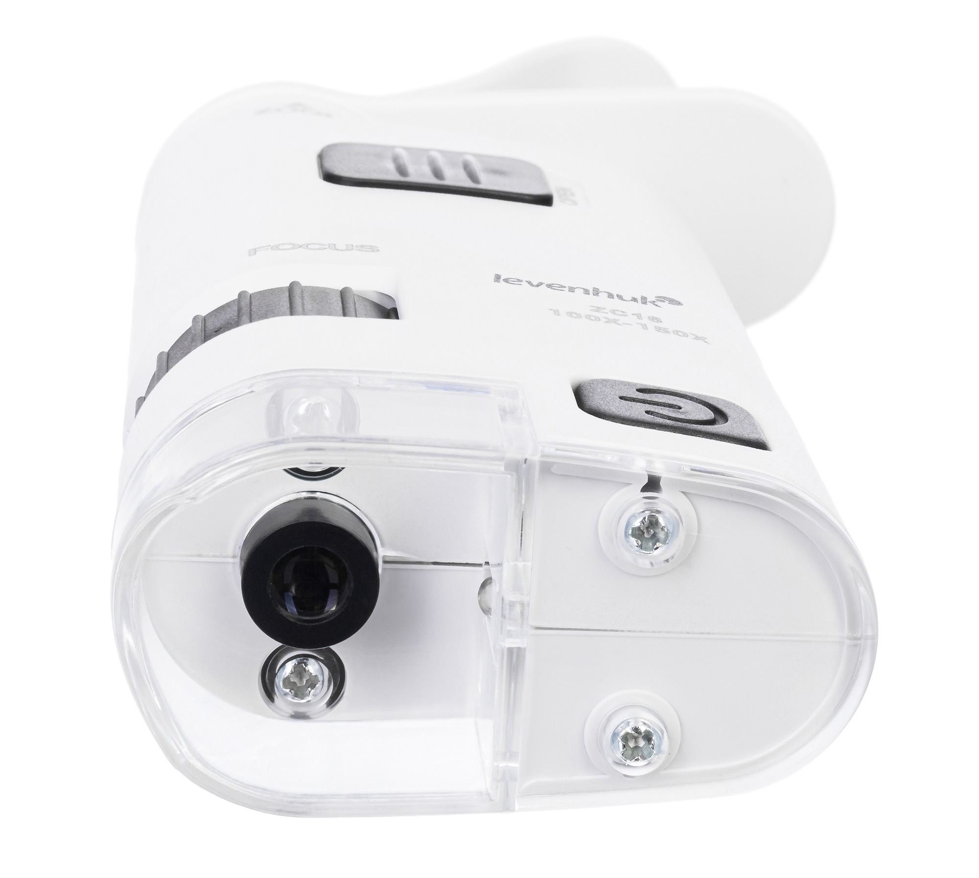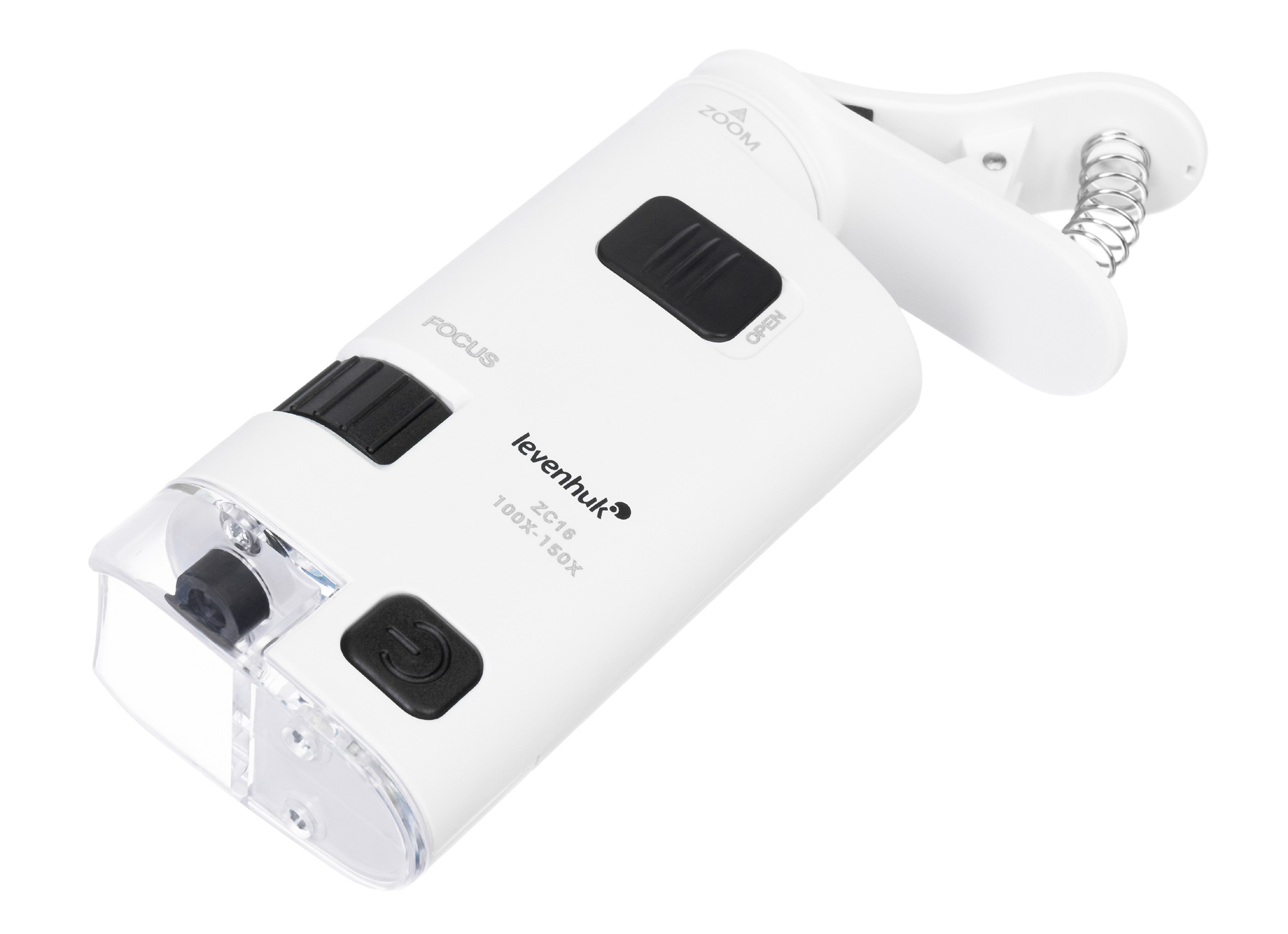 Модель Levenhuk Zeno Cash ZC16 снабжена зажимом для установки на мобильные устройства. Это позволяет использовать камеру смартфона или планшета для фото- и видеосъемки с увеличением. Картинка выводится прямо на экран телефона. Для работы при недостаточном освещении в конструкции микроскопа предусмотрена подсветка – яркий светодиод. Для его работы требуются батарейки (не входят в комплект). Для настройки резкости используется барабан грубой фокусировки.