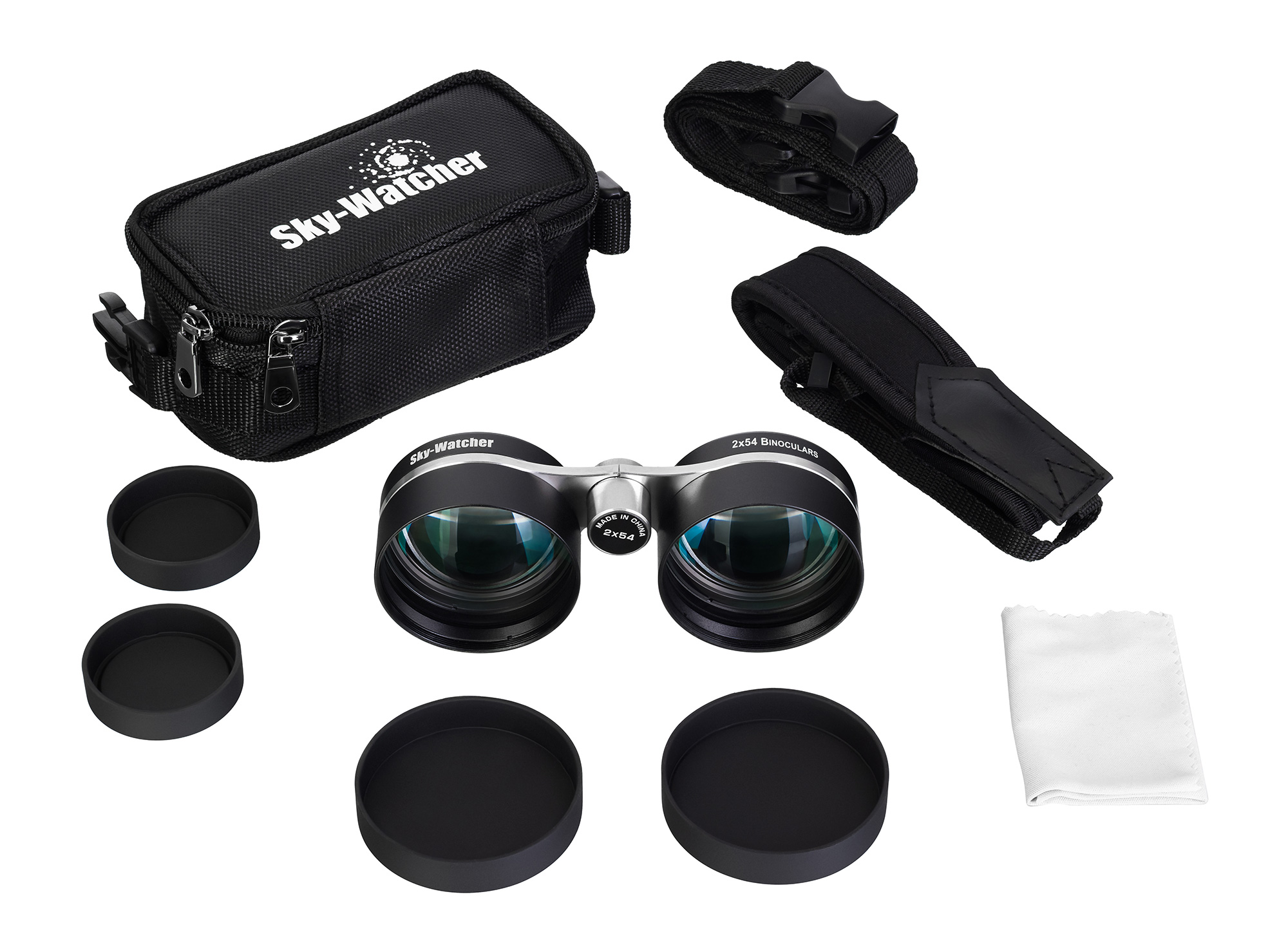 Бинокль Sky-Watcher 2x54 имеет широкий угол зрения – 36° (эквивалентно обзору 630 м на удалении 1000 м), благодаря чему он отлично подходит для наблюдений общего плана неба, поиска созвездий, рассматривания сезонных метеорных потоков, северного сияния и других явлений. Прибор легко брать с собой в путешествия и походы, переносить в кармане или рюкзаке – его вес не превышает 500 г, а компактная конструкция, созданная за счет галилеевской оптической схемы, не занимает много места в ручной клади. Сбоку на корпусе бинокля расположена петля для крепления ремешка на запястье, обеспечивающего дополнительную защиту прибора от случайных падений.