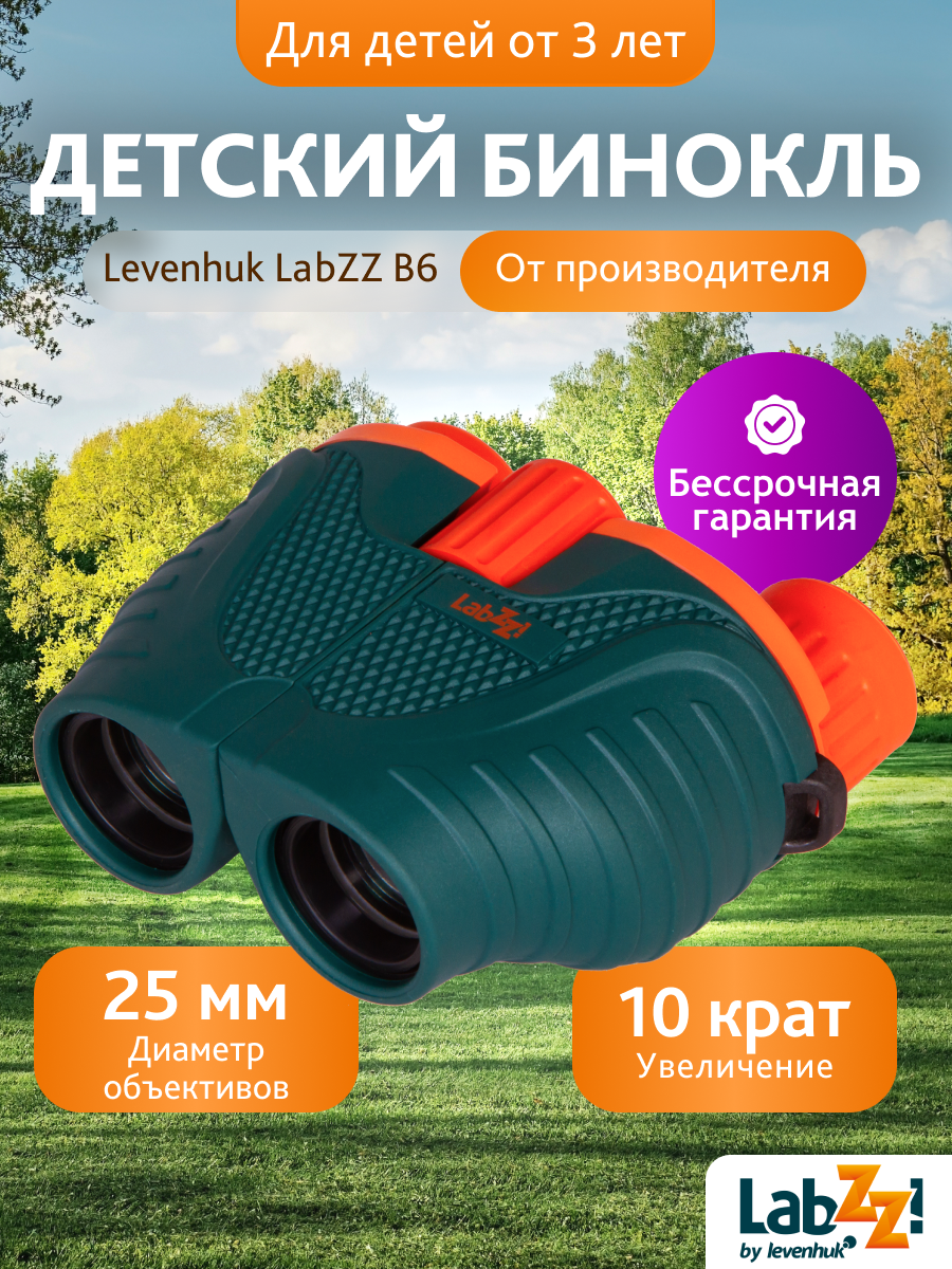 Levenhuk LabZZ B6 – облегченная модель бинокля, разработанная специально для детской руки. Такой прибор станет отличным помощником в изучении красот окружающего мира. Благодаря компактности легкого пластикового корпуса его можно без труда взять с собой на дачу, в лагерь или путешествие. Детям разных возрастов понравится гулять с биноклем по знакомым маршрутам, открывая для себя новые детали пейзажей и архитектуры. Прибор прекрасно подойдет для наблюдения за жизнью животных и птиц.