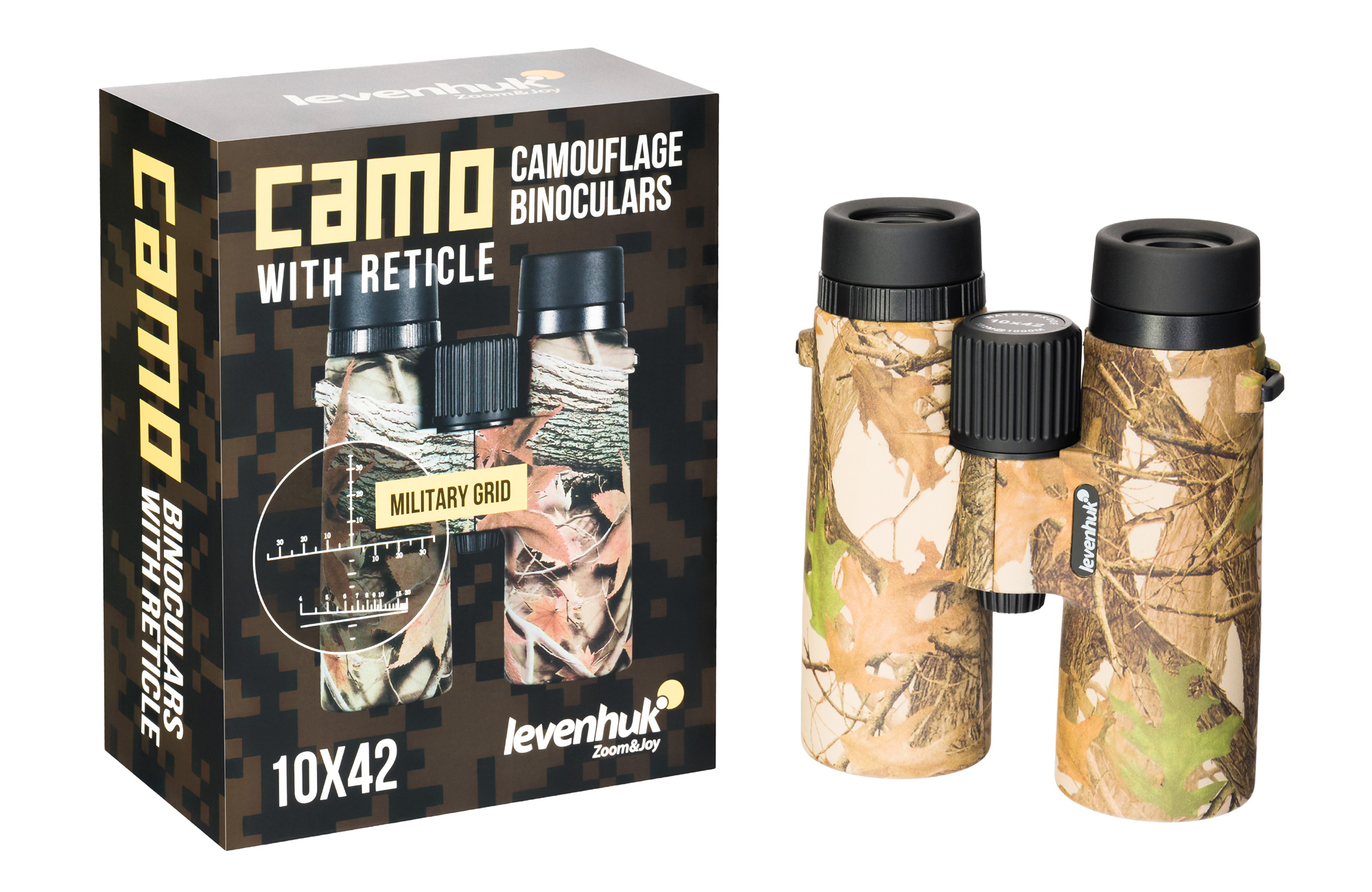 • Бинокль камуфляжный Levenhuk Camo 10x42 с сеткой