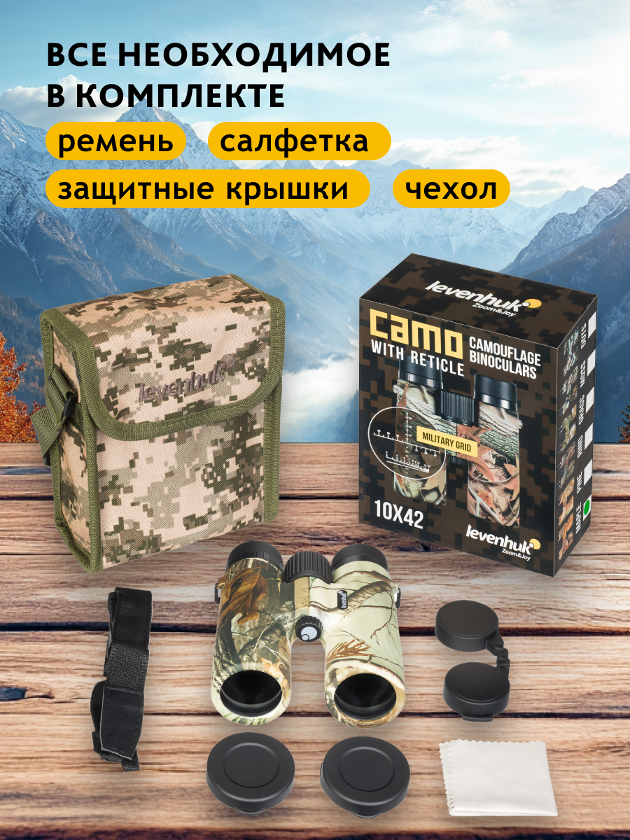 Бинокль камуфляжный Levenhuk Camo 10x42 с сеткой Размер: 1,2 мб -