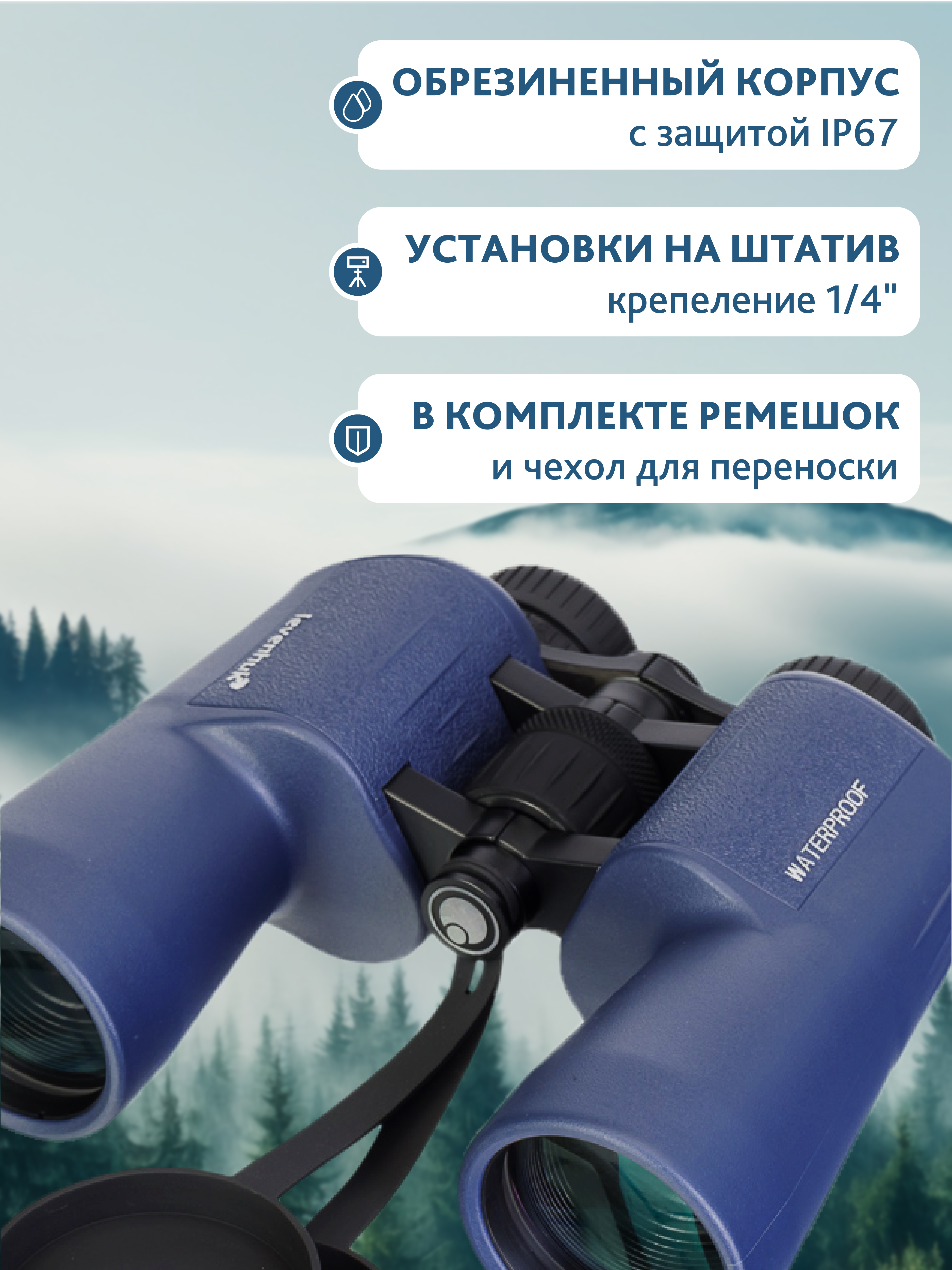 • Призмы Porro, оптика из стекла BaK-4, мощное 16-кратное увеличение