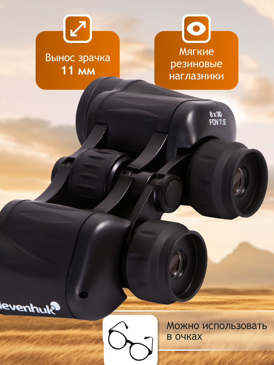 • Порро-призмы, апертура 30 мм, увеличение 8 крат