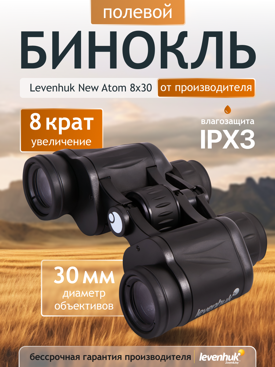 Levenhuk New Atom 8x30 – универсальный бинокль классической компоновки на базе Порро-призм. Среди достоинств модели – относительно небольшие вес и размер, широкое поле зрения, короткий фокус и оптика из стекла марки BK-7 с полным просветляющим покрытием. Увеличения 8 крат при объективах с апертурой 30 мм достаточно для большинства повседневных нужд.