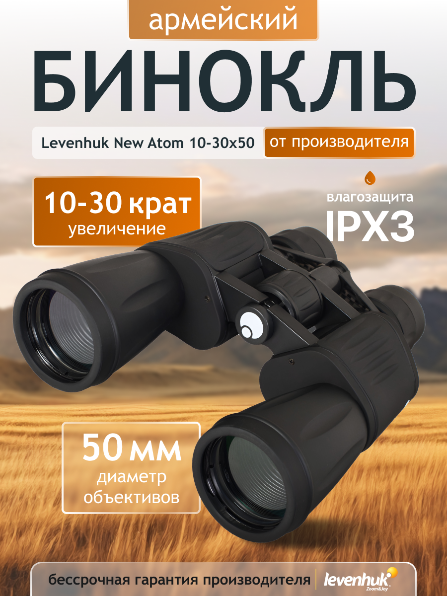 Бинокль Levenhuk New Atom 10–30x50