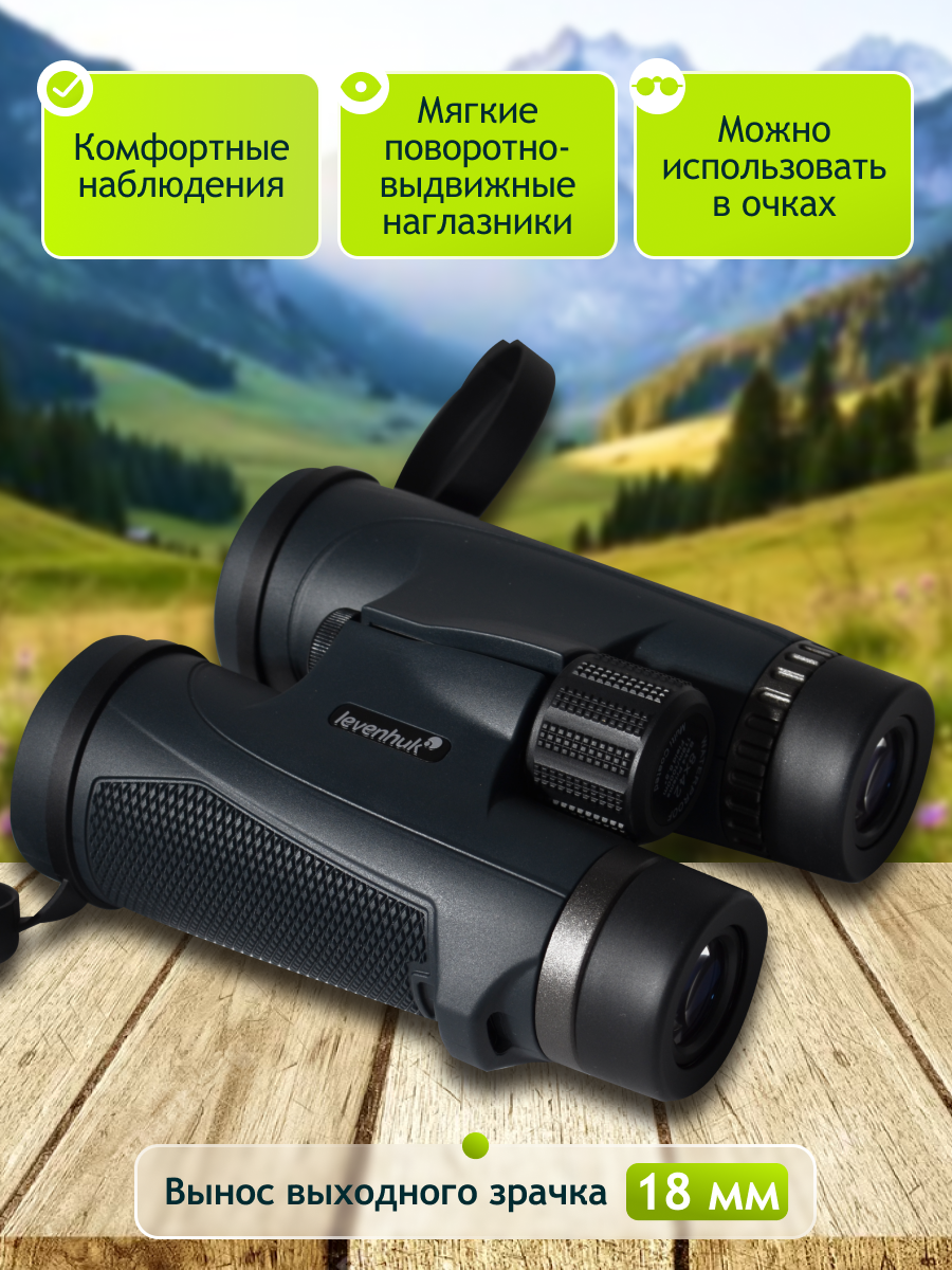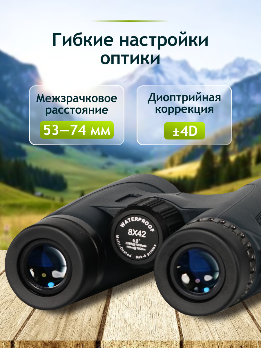 • 8-кратное увеличение, объективы диаметром 42 мм, поле зрения 6,8°