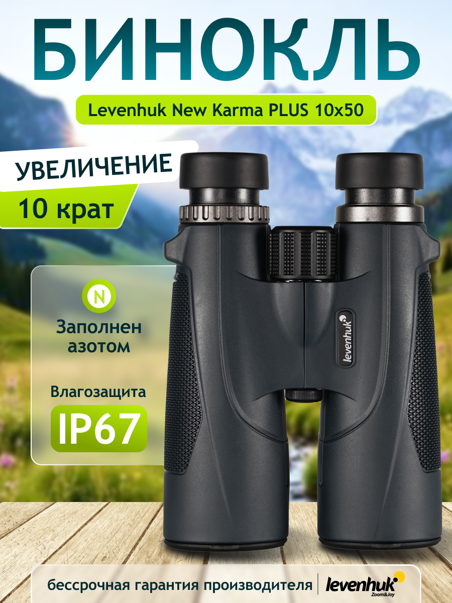Бинокль Levenhuk New Karma PLUS 10x50 – это сочетание высококачественной оптики, прочного корпуса и эргономичного дизайна. 10-кратное увеличение и светосильные объективы с апертурой 50 мм превращают этот прибор в идеальный инструмент для наблюдений на средние и дальние дистанции, во время которых пользователь не пропустит ни одной детали. Этот бинокль станет отличным выбором для охотников, рыбаков, натуралистов, охранников на объектах и участников спасательных операций, позволяя в подробностях изучать окружающую среду в любую погоду и в любых световых условиях.