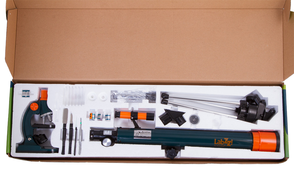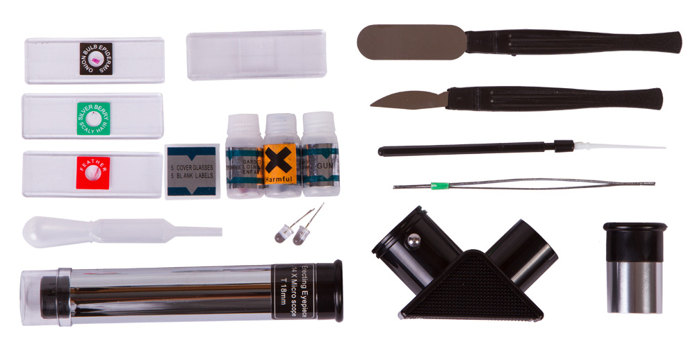 • Набор поставляется со всем необходимым для опытов с микроскопом